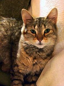 Lately we’ve heard her pawing at the kitchen cabinet doors. She hasn’t yet succeeded at opening them, and I’m not sure what her end game is with that one, but the point is that she’s busy trying new things.